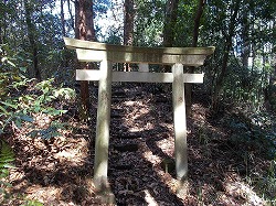 | 西から城址遠望 | 入口に立つ案内板 | 入口に建つ稲荷社 |